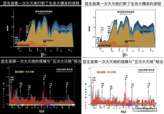 研究团队对显生宙第一次生物大灭绝事件进行科普解读的相关示意图。中国科学院南京古生物所 供图