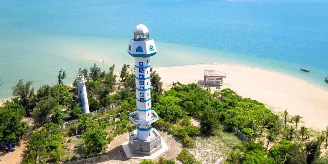 在灯楼角灯塔下,一道狭长沙滩伸向大海,这里是北部湾和琼州海峡的合水线 。涨潮时分,两片海域海水相互拍打,形成长长的“十字浪”,壮美多情,因此也被戏称为“情人潮”“接吻浪” 。